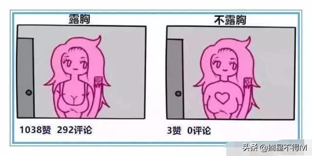 露胸与不露胸的区别,如今的互联网时代,只有衣着暴露的人还能被关注,传统本分着装却遇冷。女生的着装和潜意识行为诱惑男人,而男人的目光只在女生身上。