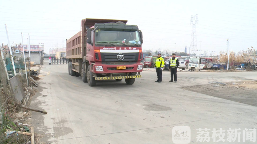荔枝新闻讯 近日,宿迁市交警支队三大队民警在巡逻时,发现一辆大货车车头号牌被翻了下去,民警迅速上前拦截检查。