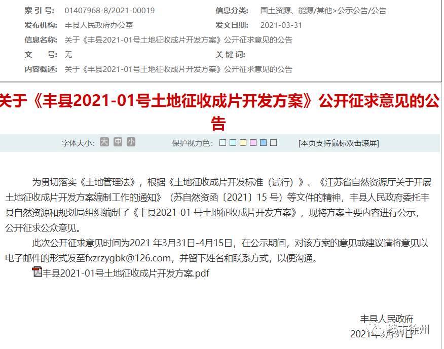 《丰县2021-01 号土地征收成片开发方案》公开征求意见!涉33个片区