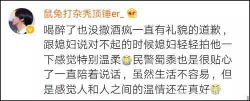 张某:宝宝,对不起,是我没用。 妻子:不要说这个,没事的。 张某的妻子告诉民警,为了他们的小家,丈夫工作十分努力,心里承受了很大的压力,她理解丈夫的不易,也希望做好丈夫的后盾,在向民警表示感激后,张某的妻子搀扶着丈夫离开。 临走前,民警也叮嘱他们:醉酒乘坐交通工具,需要有人陪同,以免发生意外。 视频发布后,不少网友表示,仿佛看到自己……