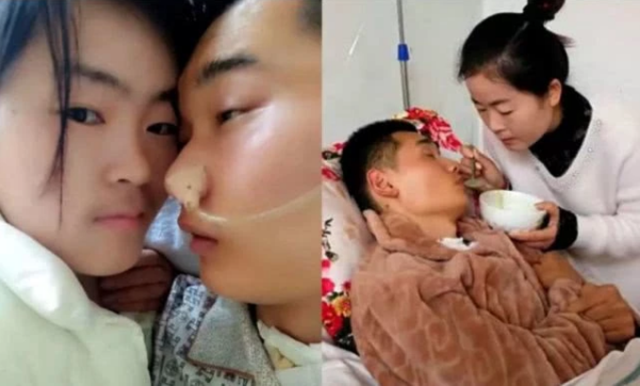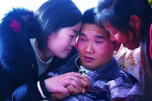 张娟在照顾丈夫 其实早在2010年张娟就与曹穿穿领取了结婚证,两人养育两个孩子,女儿11岁,儿子10岁,但一直没有举行仪式。这次补办婚礼,是燕姐和穿穿的姑姑提出来的,她们认为,在农村婚礼仪式非常重要,没办婚礼就相当于没有正式进婆家门。现在穿穿的情况有所好转,应该举行一场正式的典礼。 这几位五湖四海赶过来的网友也都是直播高手,曹穿穿的房间成了大型直播现场。 热心网友在直播 曹穿穿看上去十分瘦削,但确实比一般植物人情况好些,他的双手能够抬起来,眼睛也能转动,似乎能看到东西,只是眼神还不能与人交流。他目前不能自主呼吸,喉管是切开的,喉咙里总是发出“呼噜呼噜”的声音。张娟跟他说话时,一直唤他“大宝”:“自从他生病后,就像孩子一样,我就喊他大宝。” 4年前丈夫遭电击变成植物人,婚礼取消 2007年,张娟在朋友的介绍下认识了比她大一岁的曹穿穿,两人一见钟情,没过多久便确定了恋爱关系。由于曹穿穿常年在外地干装修,这对分隔两地的有情人只能通过手机交流,异地恋长达3年,但并未影响他们的感情。 2010年,情到浓时的张娟和曹穿穿领证结婚。那时曹穿穿积蓄不多,没钱拍婚纱照、也没钱办婚礼,他承诺张娟以后有条件了一定会补偿给她一个隆重的婚礼。 勤奋的曹穿穿没有食言,他凭借自己的辛勤劳动攒下一大笔积蓄。2014年拿出20万元在老家盖了新房,还计划用剩余的四五万元钱,等来年补办婚礼、拍婚纱照。 出事故前一家四口合影 然而天有不测风云,2015年7月8日,距离婚礼还剩一个月,曹穿穿临时接到一桩在重庆的活,不幸在干活时意外遭电击昏迷,被医生判定为植物人,不能说话、没有意识。而这时他们的一双儿女已经读幼儿园。张娟得知消息后当场哭晕在地,有人劝她放弃治疗,可看着病床上奄奄一息的爱人,想到往日的甜蜜,她舍不得放弃。 婚礼被迫取消了,张娟把住了4个月医院的曹穿穿带回家,与公婆一起照顾,每天给曹穿穿翻身20多次,擦身、捶背、喂饭、推着他到院子里晒太阳…… 张娟在给丈夫按摩 穿穿是父母唯一的儿子,是家中的顶梁柱。曹妈妈说:“穿穿好的时候,我们一家六口人生活可幸福了。穿穿可能干了,家里的房子是他自己装修的。他出事后,我们家的生活就掉入了谷底。” 顶梁柱倒下,一家老小生活艰难 曹穿穿的康复费用是一笔不小的支出,光是电费每月就要1000多元钱,因为康复床、呼吸机、吸痰器都是电动的,夏天和冬天24小时开空调。张娟只能四处向亲友借钱维持。公婆种了6亩大蒜维持生活,家里还有两个孩子要照顾,三个健康的成年人都不能打工,生活可想而知有多艰难。 有一次,家里买了只鸡腿,曹妈妈想给卧病在床的穿穿吃,张娟想给正在长身体却缺乏营养的宝宝吃,婆媳俩都是在心疼自己的儿子,因此有了争执。说起这件事曹妈妈就抹眼泪:“家里确实太困难呀了,我想着小孙子能跑能跳的,少吃口肉没关系,穿穿躺床上不能动太可怜了。其实小孙子很懂事,学校要交钱组织去春游,我说咱不去春游了,买点肉跟爸爸一起吃好不好,孙子就同意了。”