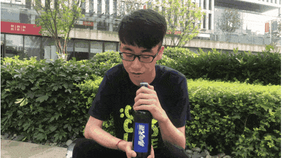 一瓶冰镇啤酒上来, 还没等到服务员拿来开瓶器, 就迫不及待的用牙咬开瓶盖。