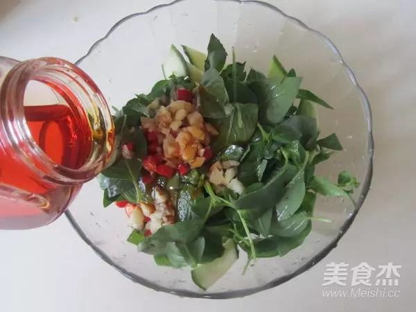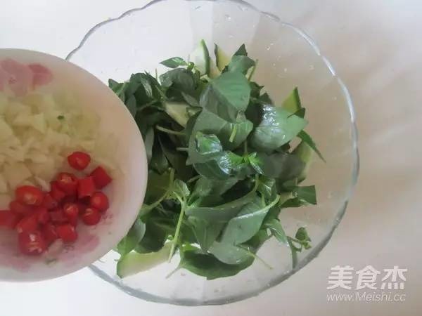黄瓜可是夏季凉拌菜的主力军,富含维生素C和维生素E,清热利水、解毒消肿、生津止渴。常吃黄瓜,可以提高抵抗力、延缓衰老,而且黄瓜含有丙氨酸、精氨酸,有防止酒精中毒的作用,所以,很适合做下酒菜。 今天有位朋友问,黄瓜和什么一起拌好吃?我回答是黄瓜和蒜泥、荆芥一起拌都好吃。这道菜,也是我家经常吃的,黄瓜搭配荆芥,吃起来别有一番滋味,特别适合下酒。 关于荆芥,河南的特色菜,这里的人大多都喜欢吃,喜欢到了无论做菜、做汤、做面条都要放的地步!有些朋友说,受不了这个味道,一打开袋子就闻到了强烈的怪味儿,吃着还有点辣。是的,荆芥和薄荷一样含有挥发油,有着比较浓郁的芳香气味,吃起来也的确有点辣辣的。 -荆芥拌黄瓜- By 斯佳丽 用料 主料:水果黄瓜2根、荆芥3根 辅料:红椒2个、蒜2瓣、香醋1勺、生抽1勺、油盐适量 做法 1.准备好原材料; 2.摘下荆芥的叶片, 黄瓜切成菱形片, 红椒和蒜切成末; 3.将所有的原材料放入大碗中; 4.加入少许盐; 5.加入香醋和生抽; 6.放入适量的辣椒油, 拌均匀盛入盘中; 7.端上桌了。 烹饪技巧 1. 荆芥选用嫩叶片; 2. 不吃辣的用普通芝麻香油替换红辣椒油 绿谷制药 sohu.com/a/271426816_729399
