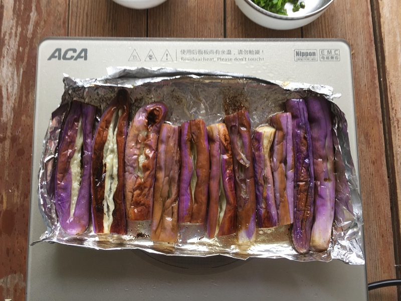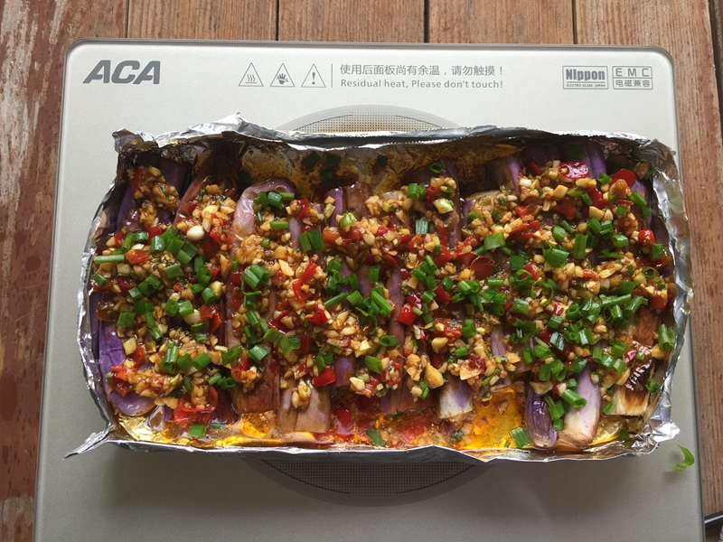 上次在家自己做烧烤,一家人围坐,边烤边吃,吃的好开心,所以后来又变着花样搞了些别的。说到吃烧烤,荤菜当然都很喜欢,素菜里比较喜欢的就是烤茄子了,茄子烤软后,加入事先调好的蒜蓉剁椒酱,软软的茄子,配上蒜香味浓郁的剁椒酱,开胃又下饭,感觉用来配米饭吃都可以多吃一碗饭呢。简直太爱这道菜了。虽然是一道很不起眼的素菜,不过端出来宴客也会很受欢迎的。前边做了几次,我感觉都非常的成功,全家一致好评,所以这次来跟大家分享这道菜的做法,做法真的非常简单,一学就会! 做这道菜可以用大一点的茄子,不过我感觉这种细细的线茄肉嫩,而且更快能烤熟,所以这次用了这种茄子。茄子做的好不好吃,我感觉酱料还是很重要的,做酱的时候原料一定要舍得放,蒜蓉,剁椒,葱都可以多放,重要的事说三遍,多放!多放!多放!这样做出来的茄子更有味,也更好吃! 如果不太能吃辣,辣酱可以少放点,或则选为是特别辣的酱,蒜蓉的量最好不要减。 另外要说的是而且茄子这种食材很吸油,油也要放宽点,油太少也容易粘锡纸上。这道菜本来就重口味,所以料还是要舍得下,不过等你吃的时候,感觉还是多放比较好吃的哈。奢华点可以炒点肉末放在酱料里,不过我感觉不加肉末也非常好吃了。 最后话说这个电陶炉确实挺好用的,而且不挑锅,什么锅都可以用,不管是什么炒锅,汤锅,甚至是砂锅,这个电磁炉是做不到的呀!这次直接用锡纸就做了一道菜,做完还不用洗锅,直接把锡纸扔掉就可以了,简直太方便了。如果没有,可以用烤箱,或则其它的厨具做也可以的,喜欢的朋友抓紧试试! 原料: 茄子、剁椒、大蒜、香葱、盐、生抽、油。 做法: 1、原料备用。 2、大蒜切成末,葱白切碎。 3、加入剁椒,生抽,盐搅拌均匀,做成酱料备用。 4、用锡纸做成长方形的小盒,放在ACA电陶炉上预热。倒入适量的油,油可以多和一点,因粗茄子比较吃油。 5、然后把切成段的茄子摆入锡纸盒内。 6、烧一会后给茄子翻面,使其受热均匀。 7、等茄子变软后,用小刀给茄子划个口。 8、在刀口上加入做好的酱料,继续烤一会,然后撒上葱花即可食用。 大家好!更多美食菜谱,请关注尘欢。我是尘欢,一个喜欢美食,热爱生活的达人,喜欢我的菜谱的朋友请关注我,点赞,收藏,评论,转发。会分享更多原创菜谱给大家!期待与你们相识! 绿谷制药 yidianzixun.com/article/0NU4u3m7