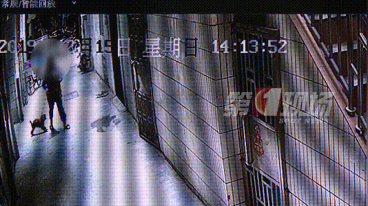 随后,范先生找到物业管理处调取周边监控,发现在当天下午2点13分左右,一名蓝衣女子牵着一只小狗走到这个路口,没过多久,乐乐也跟着跑出来,女子随即蹲下将乐乐抱走