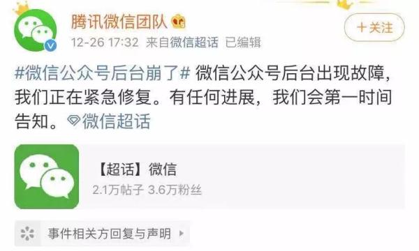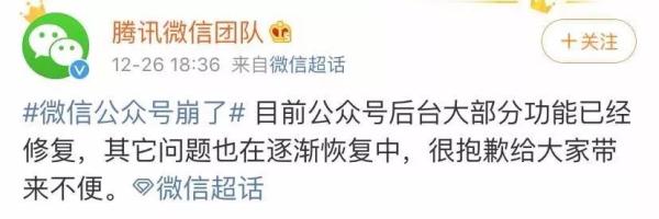 18点36分腾讯宣布公众号后台大部分功能已经修复