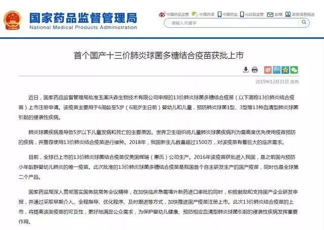 13价肺炎球菌多糖结合疫苗获批上市