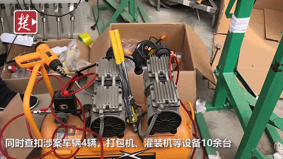 与此同时,蹲守在环宇工业园和熟地村的民警也迅速出动,成功抓获了嫌疑男子30岁的谢某、32岁的吴某、58岁谢某国、35岁的肖某。其中一名男子正在野外上厕所。当民警问为何不在家里上厕所,他说“家里厕所要用来制酒”。 当天,黄陂警方在3处窝点查扣涉案车辆4辆、打包机灌装机等设备10余台、已封装完成的假冒品牌白酒300余箱。